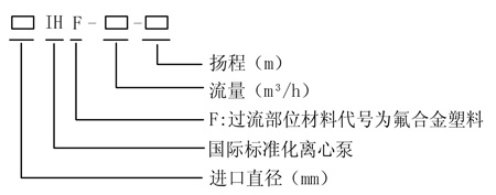 IHF单级单吸耐强腐蚀化工离心泵使用温度为-20℃~110℃,目前被广泛应用于化工生产中的腐蚀 性介质输送、有色金属冶炼中的电解液输送及制药、石油、电力、电镀染料、农药、造纸、食品、纺织、 冶炼、钛白粉、盐化工、钾复肥等众多行业任意浓度的硫酸、盐酸、氢氟酸、硝酸、磺水、强酸、强氧 化剂、有机溶剂、还原剂等强腐蚀介质的输送。3、型号说明